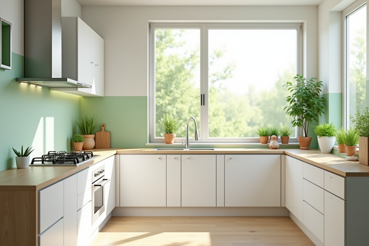 Opter pour l’illusion d’espace, c’est jongler avec nuances et matières. Un blanc légèrement ivoire, un gris doux, un vert tendre sur les surfaces principales, murs, meubles, crédence, et l’harmonie s’installe. Mais la couleur ne se contente pas d’un effet d’optique. Elle influence l’atmosphère : sérénité, énergie ou identité affirmée, tout se joue là, selon le choix orchestré pour la décoration cuisine.