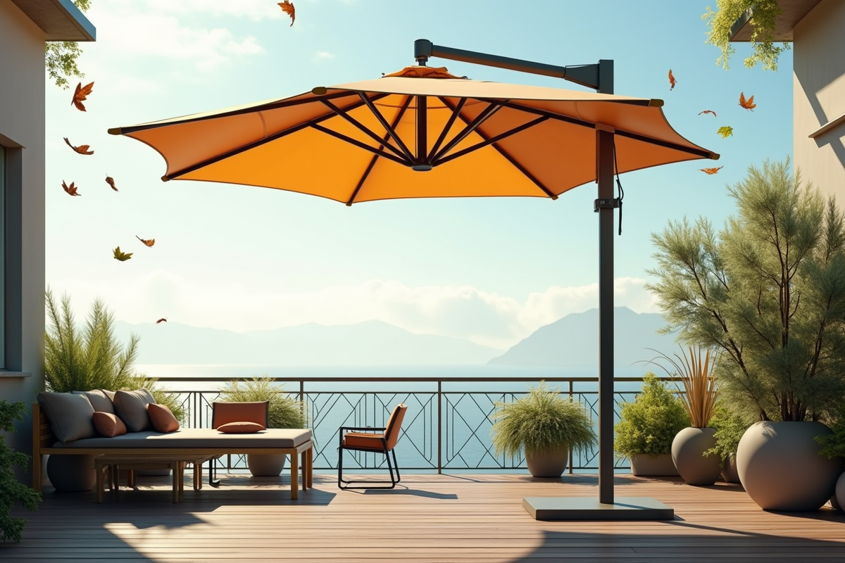 L’emplacement influe aussi sur la stabilité. Un parasol déporté bien positionné, à l’abri des flux d’air directs ou le long d’un mur, limitera nettement les oscillations. Les versions les plus avancées s’adaptent : certains modèles connectés permettent de régler l’orientation ou la tension de la toile, pour une adaptation rapide à l’environnement.
